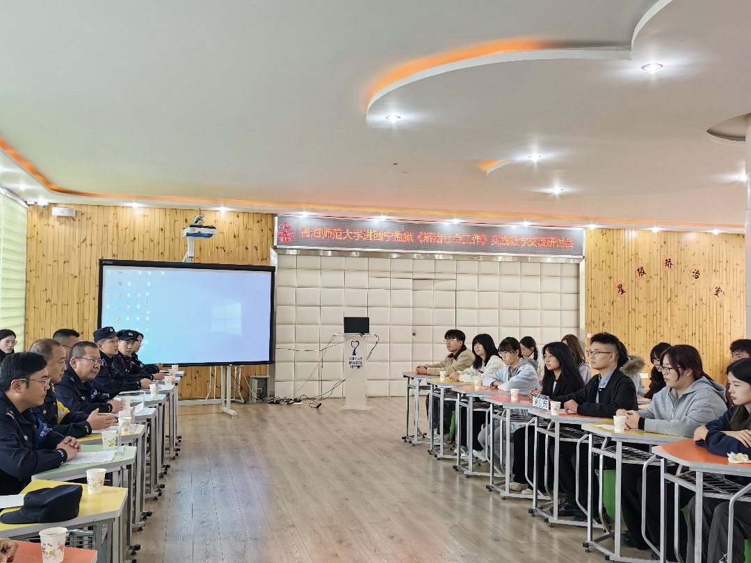 经验交流环节中,锁仁宇副监狱长对师生的到来表示热烈欢迎,同时介绍了西宁监狱在矫治工作中的长期探索与坚守方向;心理健康指导中心副主任王坤系统梳理了监狱矫治工作的实践经验与现实挑战,一线民警代表则结合经手案例,分享了矫治服务中的实操方法与心得。随后的互动研讨气氛热烈,同学们围绕“中华优秀传统文化在矫治中的运用”“服刑人员个性化矫治方案设计”“监狱民警工作压力与职业素养”等议题积极提问,民警们结合实务经验逐一细致解答,让学子在思维碰撞中深化了对监禁场所矫治工作的认知。胡亚辉老师代表师生作总结发言,他首先对西宁监狱各部门的高度重视、精心安排及真诚分享表达感谢,随后指出,本次实践让学生既深化了对矫治工作理念的理解,又明晰了专业方法的实务应用,更拓宽了未来职业发展的视野,同时提出了校监双方深化合作的期待。锁仁宇副监狱长最后叮嘱师生,要充分认识监狱的特殊性质、严守纪律要求,并鼓励学生以此次实践为契机,提升自身法治素养与专业责任感。